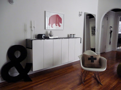 Anna over at Door Sixteen recently unveiled her “fauxdenza” (her words, not mine), and I love it. She used 3 Ikea Akrum wall cabinets at $52 each. It’s a clean look that doesn’t take up any floor space, and will cost much less than any furniture pieces you’ll find out there (unless you find an amazing craig’s list deal or undertake a much larger and more time-consuming DIY project). Yes, it’s Ikea (someday I promise I’ll post about all my research comparing Ikea cabinets to other cabinet lines), and you have to assemble it yourself, but if you’re in a pinch and you need some extra storage / display space, it’s a great option.
