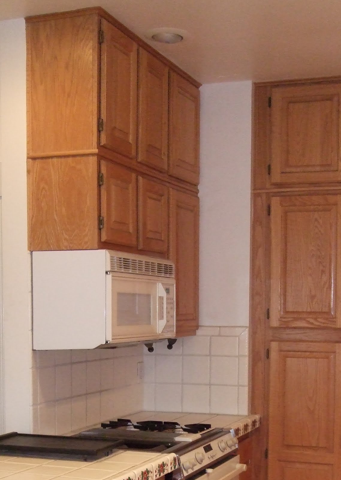 I really don’t like microwave hoods. And I especially don’t like them at the end of a run of cabinetry. The sides of these hoods are not intended to be exposed. And I really really dislike them when they are mounted too low. (Note: Most manufacturer’s specs will typically say the recommended mounting height is 66″ from the top of the microwave to the floor. In my opinion, this is WAY TOO LOW if you actually want to be able to see and stir the contents of the pots on your back burner.) Regardless, this is exactly the set-up that came with our house. About 6 months ago, our microwave exploded. Fortunately it was covered under our homeowner’s warranty, though unfortunately our claim got lost and it took months to sort it all out. We finally got the replacement microwave but hesitated to actually install it, because both of us hated having the microwave in that location. So, after days of pondering over our options, we decided if we had to have a microwave in that location, we should at least be able to raise it, which might make us despise it a little bit less.