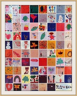 I love the following images, where the children’s art was scanned or photographed and made into a poster collage: